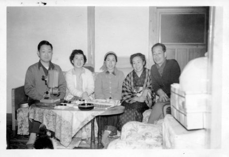 Likely taken soon after their wedding in 1951. Dad, mom, Aunt Eiko, Grandma and Grandpa. Notice the heavy metal 16mm Bell & Howell movie projector. I remember using it in Los Angeles as a kid. Tokyo.