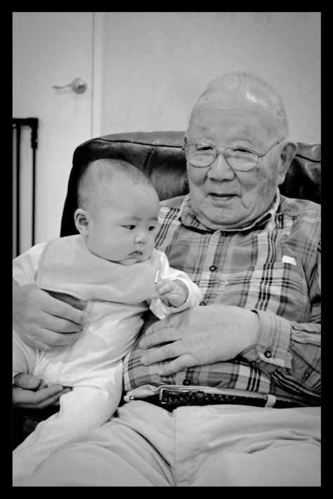 Although 96 years of age, Dad meets his only great-grandchild Emi. I think everyone was scared he was going to drop her. 2014.