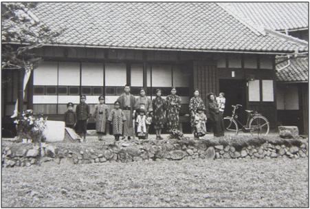 Dad is standing, third from left in this rare family portrait taken in front of his family’s new Hiroshima home, circa 1929.