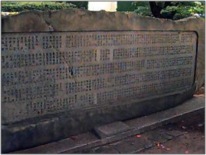 This wall is what remains of Dad’s high school in Hiroshima. It is inscribed with the names of the students who ceased to exist on Aug. 6, 1945.