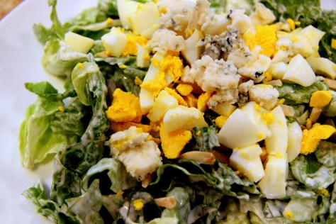 My Maytag bleu cheese salad. Notice the color provided by the PERFECTLY hard-boiled eggs. 🙂