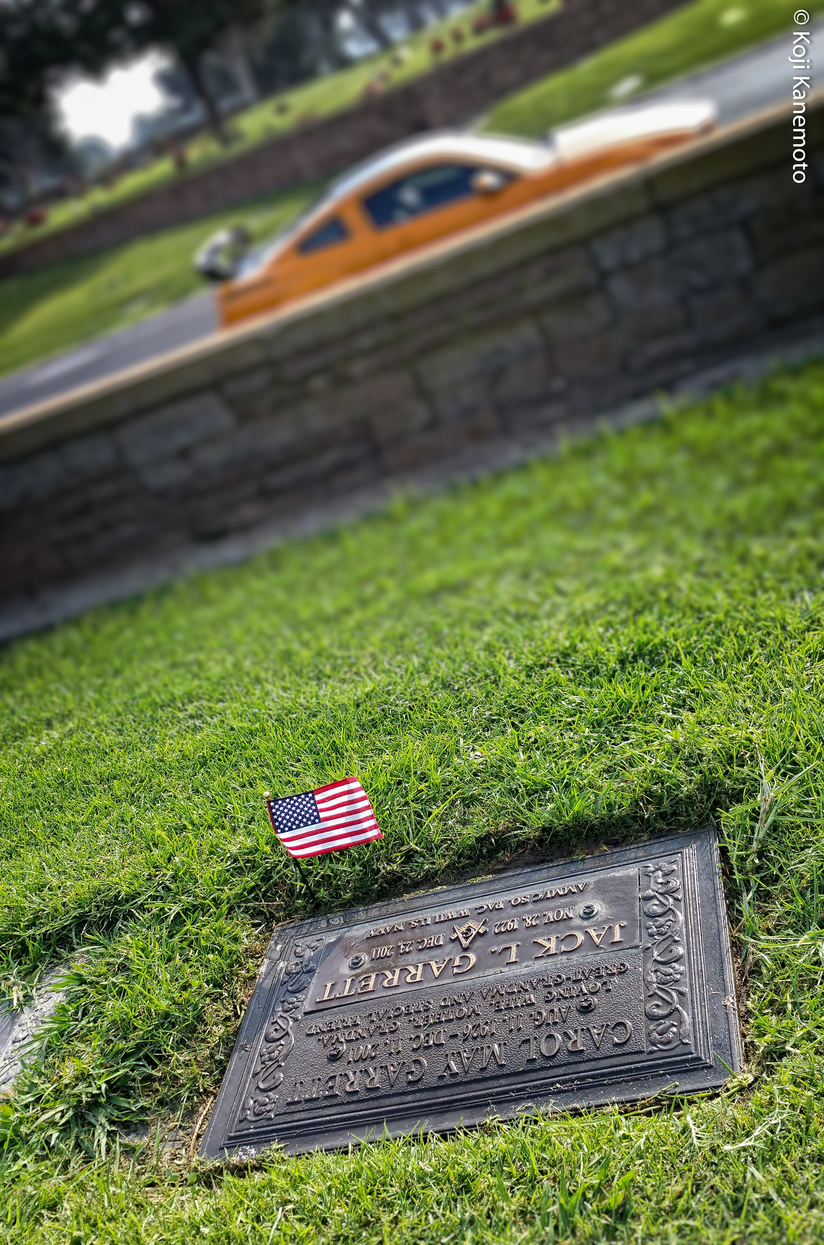I have been remiss in visiting Old Man Jack; when I arrived there today, I made sure he heard my Mustang he loved to ride in so much… I hope his now silent neighbors didn’t mind too much. As I neared his resting place walking on very sodden soil, it was clear I was his last visitor from some months ago. The grass had definitely encroached on his gravestone; even the hole where the water decanter should be seen was covered up.