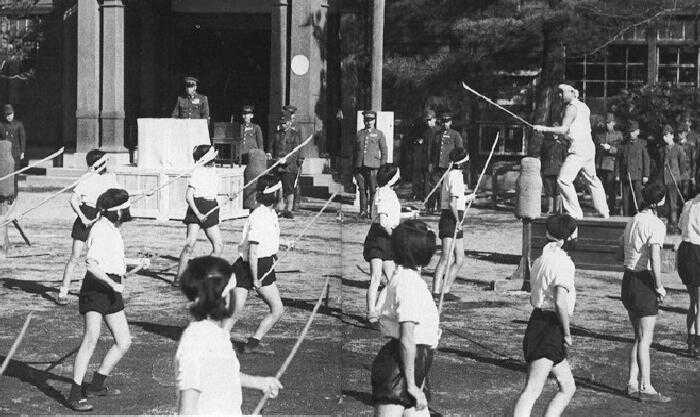 Dated April 1943. A boy poses holding a stick in a bottle filled with unpolished brown rice. This is not the polished brown rice you eat today at Panda Express. It was more wild. Japanese would insert a stick into a bottle partially filled with brown rice then repeatedly jab at the rice until the husk came off. It was low grade rice with the germ still on. (From the Mainichi Shimbun archives.)