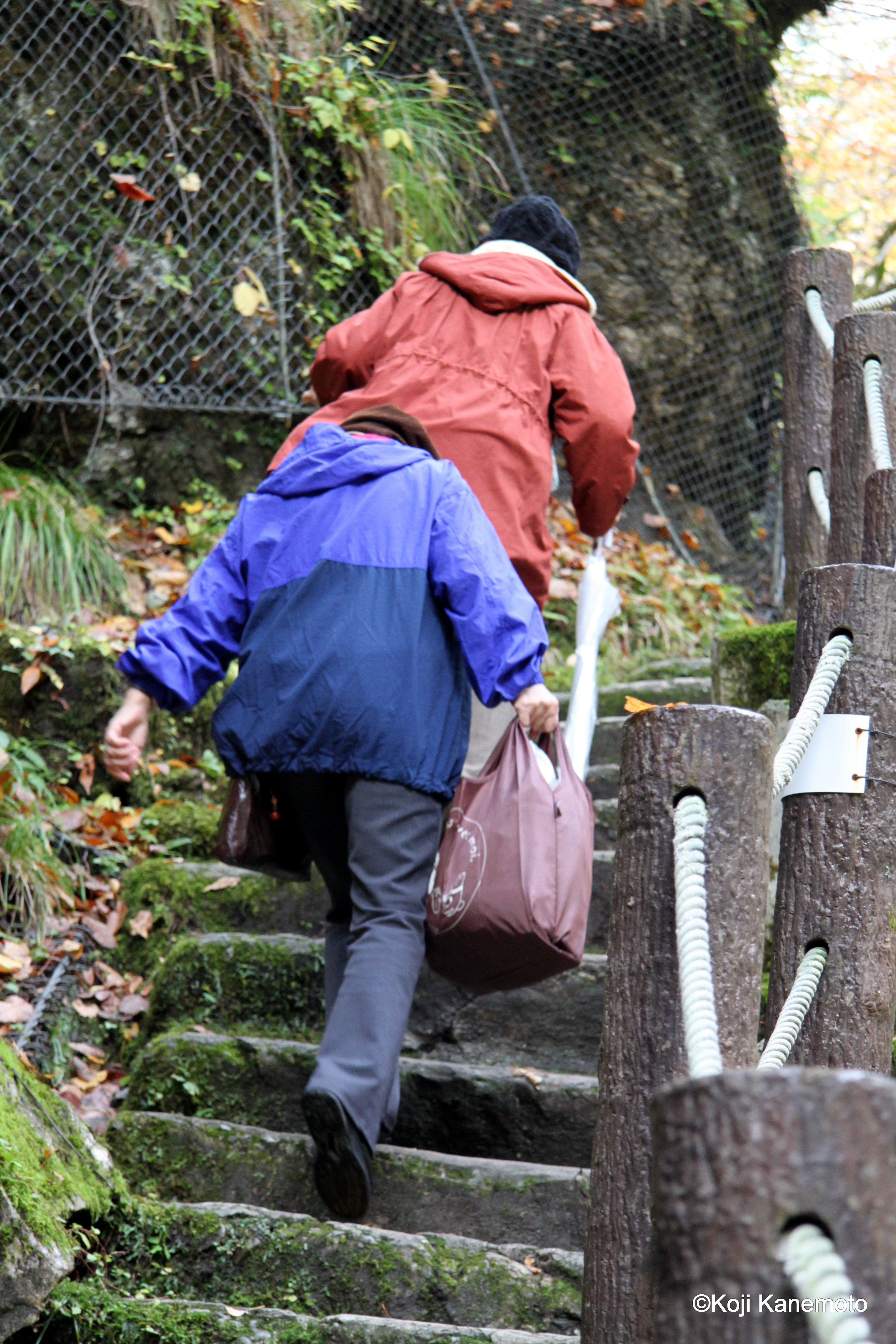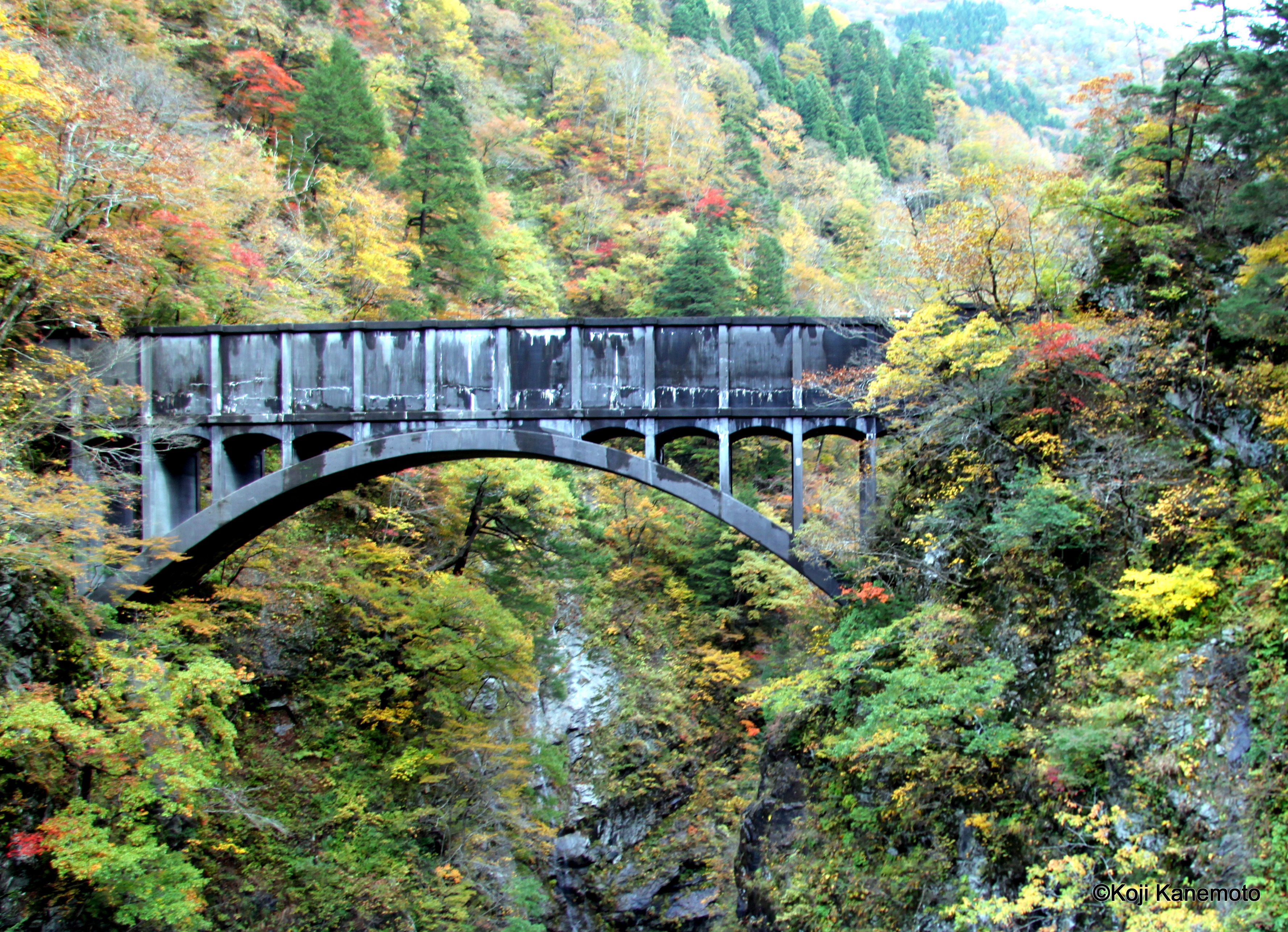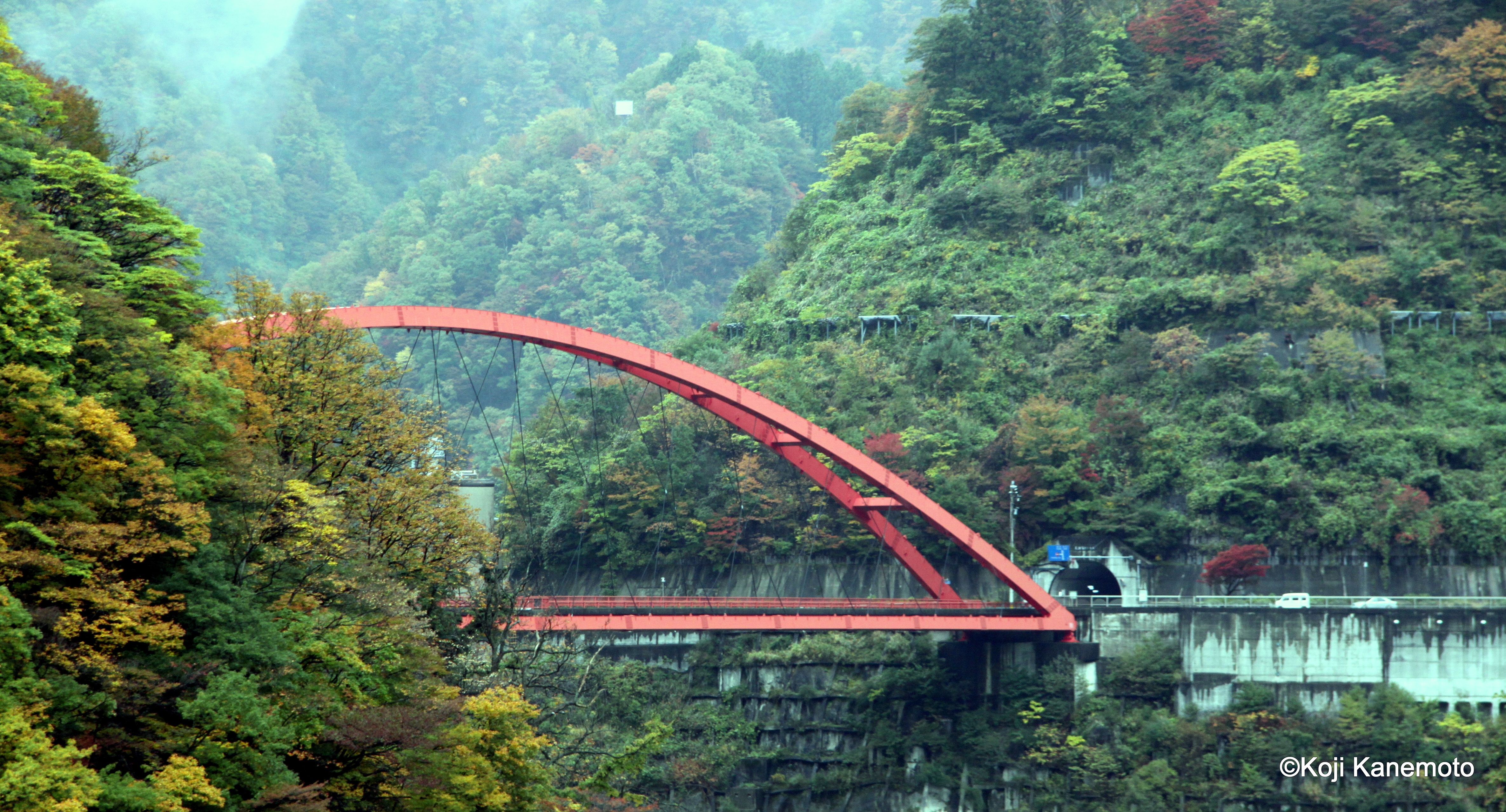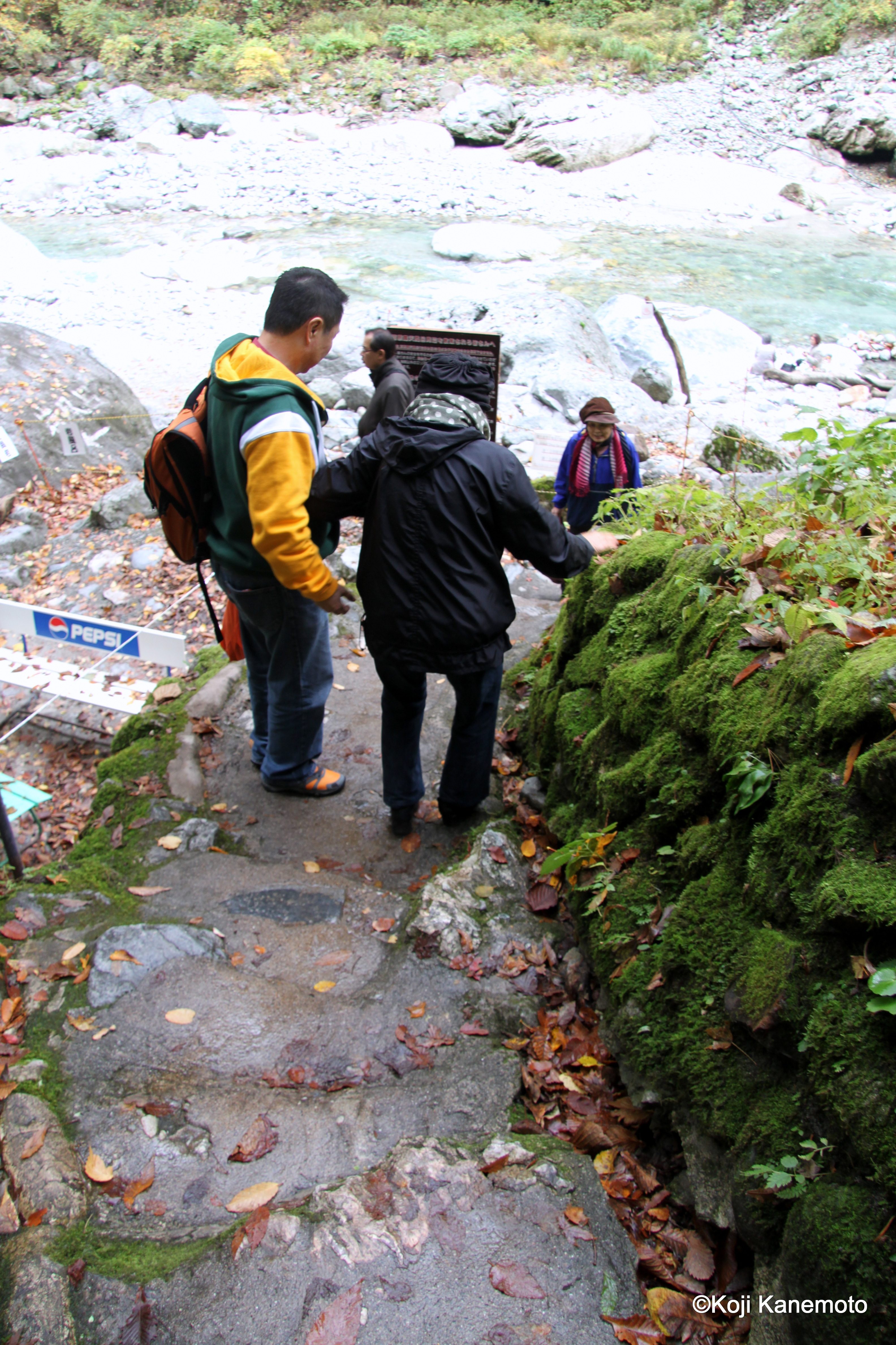 Kiyoshi’s gracious treat continued on the Kurobe Gorge Tram (黒部峡谷トロッコ). It is a a sightseeing train running on a very narrow track originally built to aid the construction of the Kurobe Dam. It follows a winding path along the river – something like 20 kilometers from the base station of Unazuki to the end. We we there unbelievably at their peak of the autumn color change. It is important to note we hiked a bit after getting off the tram at Kanetsuri Station – and my cousins below LED the way. While Masako has difficulty going DOWN stairs, she was a jack rabbit going up. Amazing. At 80 years of age.