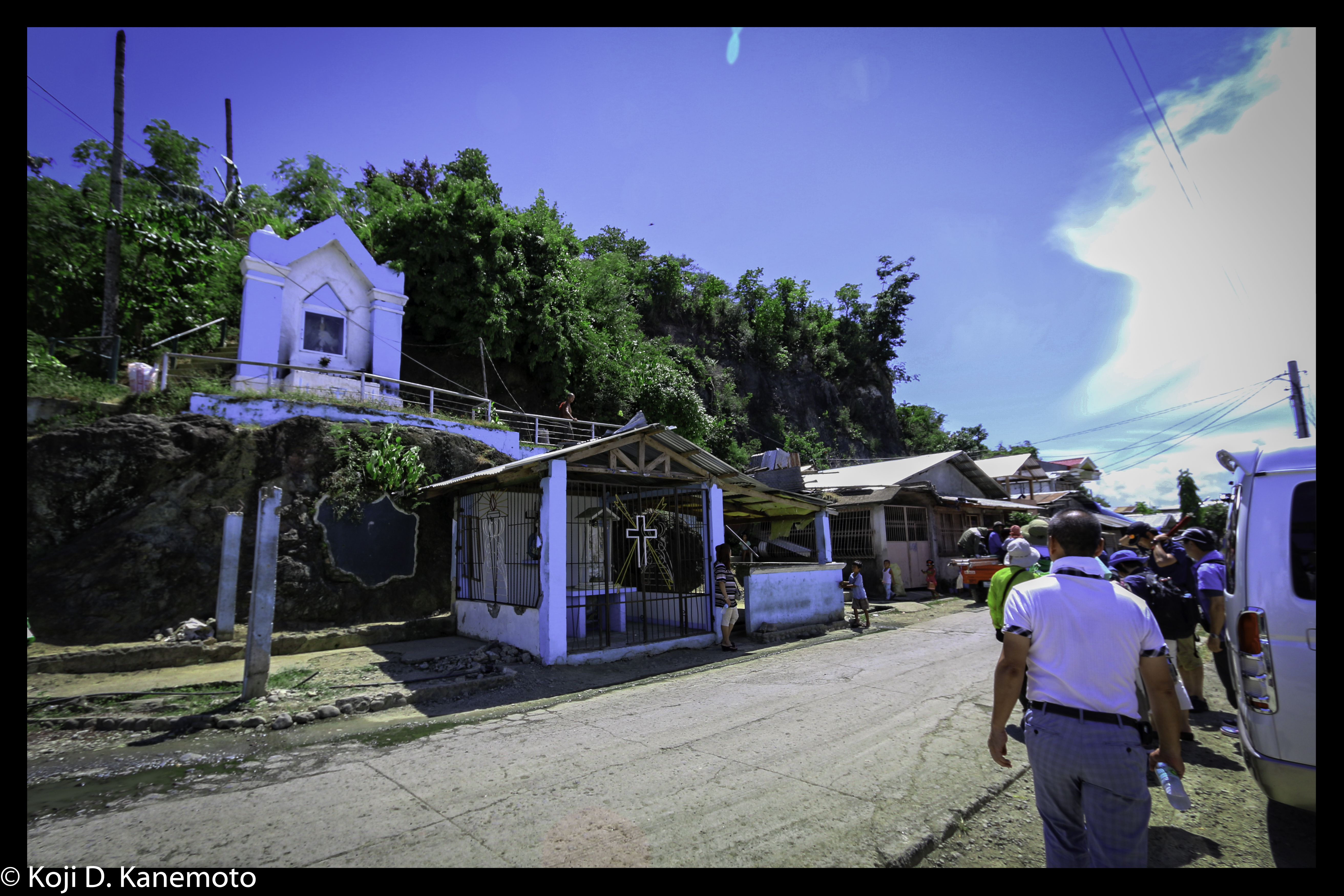We crossed through Catagbacan’s center and into their small elementary school, partially rebuilt after Typhoon Yolanda. It was a large spread, with its natural sprawling beauty. Mr. Ota explained that the last remaining rag tag survivors of the 41st Regiment had assembled in this spot along with others. (One report said there were 268 in total.)