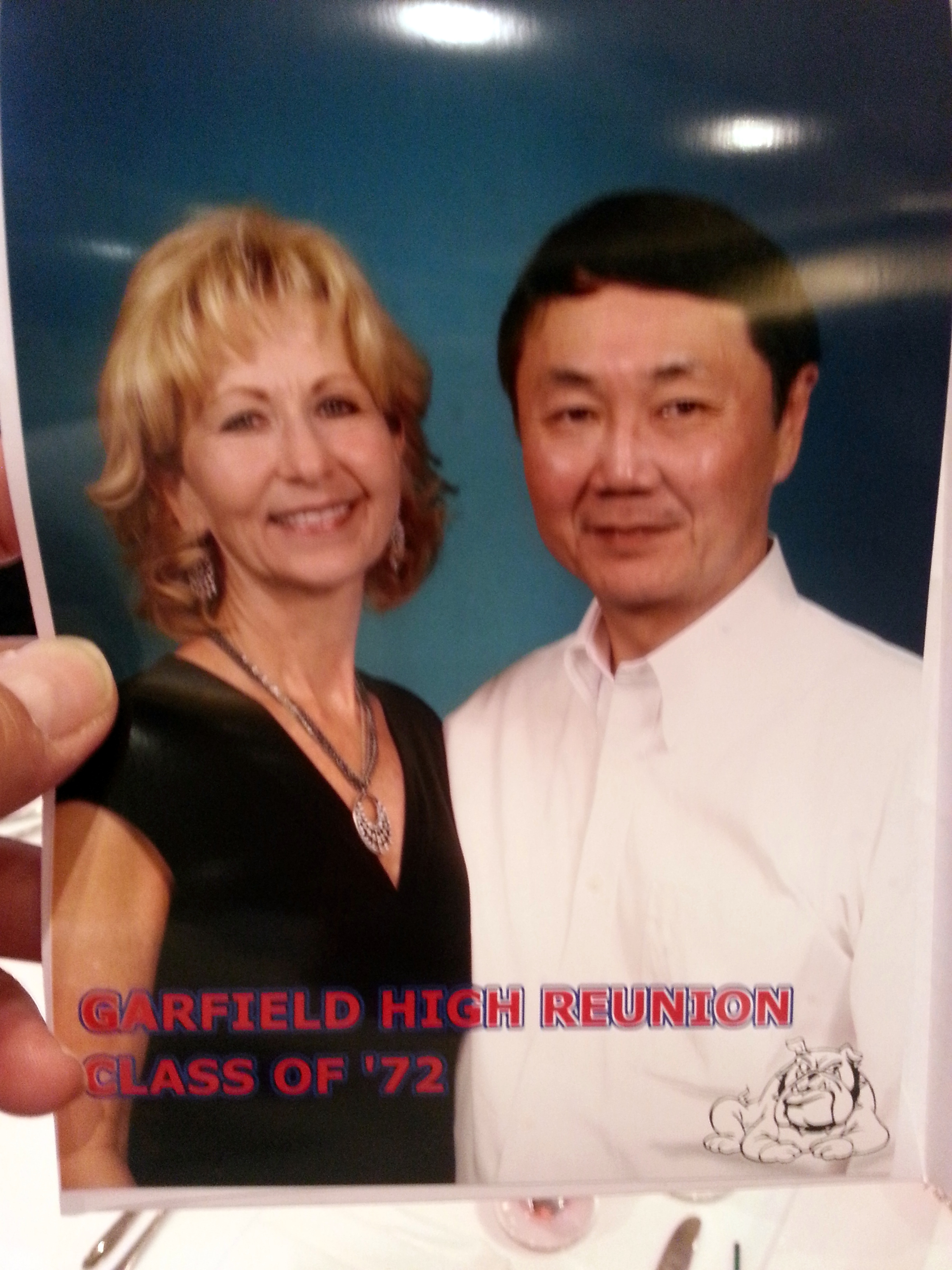 She snuck up on me and surprised the dickens out of me… and man, it was worth it. She looked stunning – gorgeous if I may say – but it was Mari Jo. That same infectious smile. From 4th Street School. In East LA.