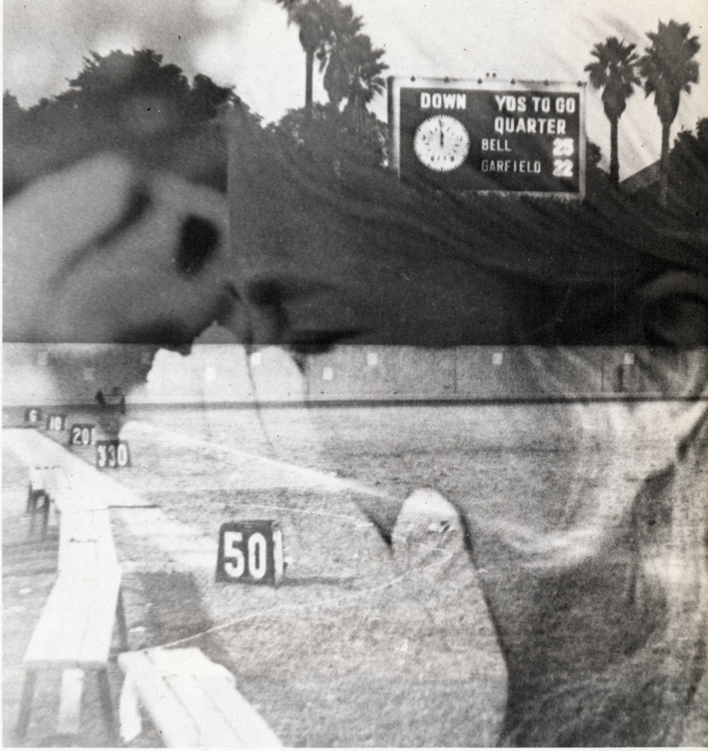 When my angelic Brooke pulled the plugs, the garage flooded – and all but one set of the high school negatives were ruined. The prints from those precious days that survived were also gone…including my most favorite one which was a double-exposure of Mari Jo immediately after losing the football league championship game in the final seconds.