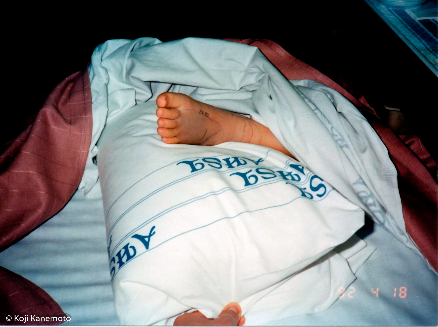 My first daughter about six hours after the anti-venom was administered, with her intensely pained left foot resting on a pillow.