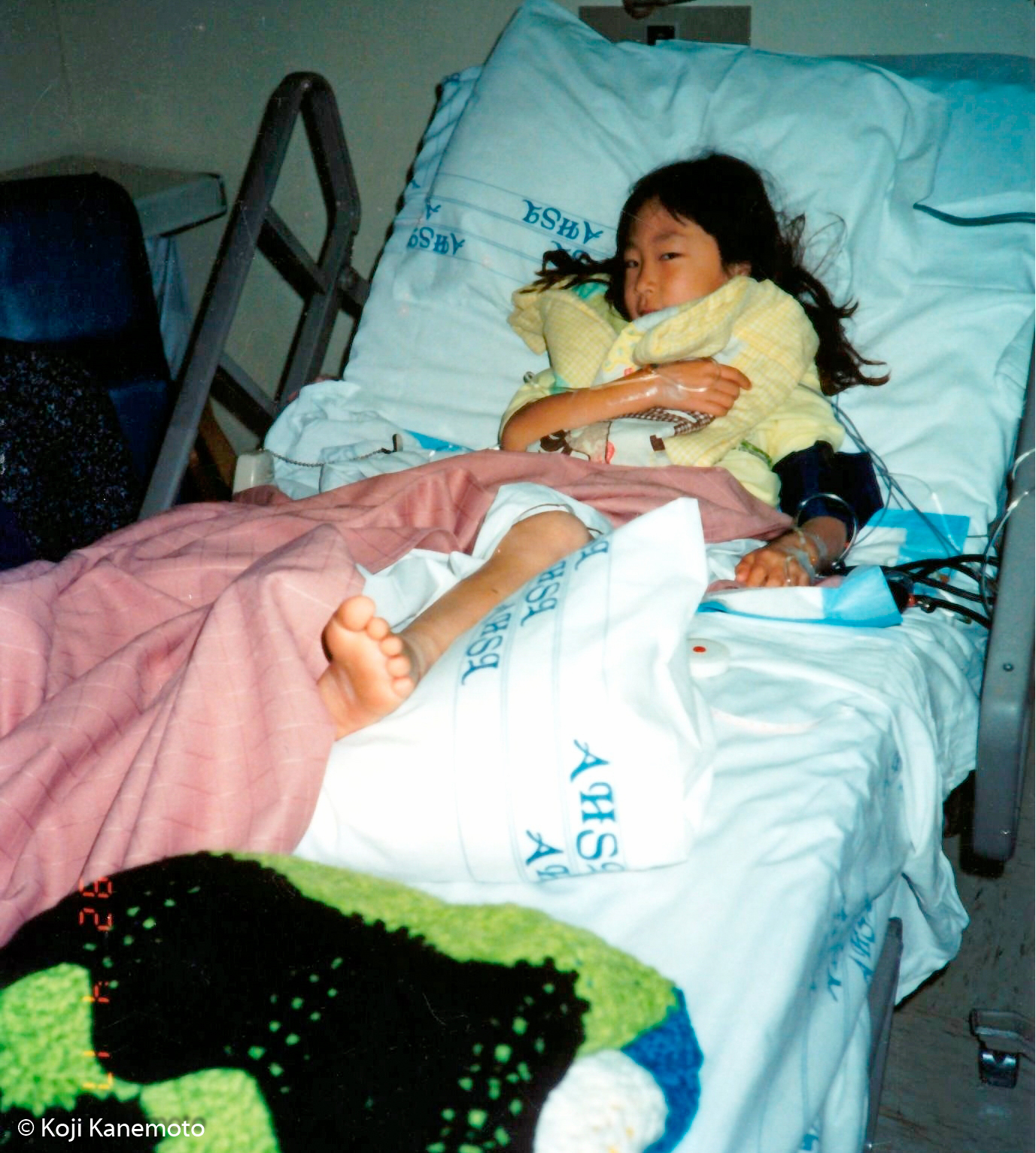 After the anti-venom drip is started, the waiting begins. Her mom brought along her favorite yellow blankie.
