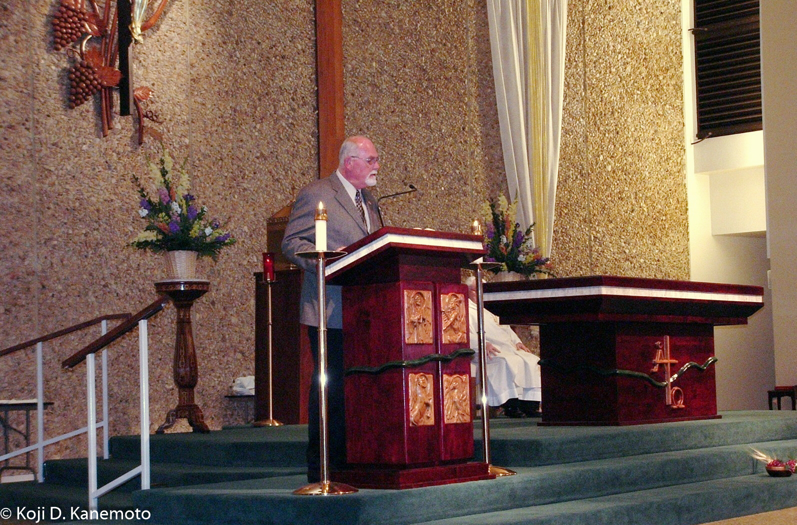My bud Don during the dedication of the new “ambo” (?) at his church. He is participating in a Good Friday play as I type.