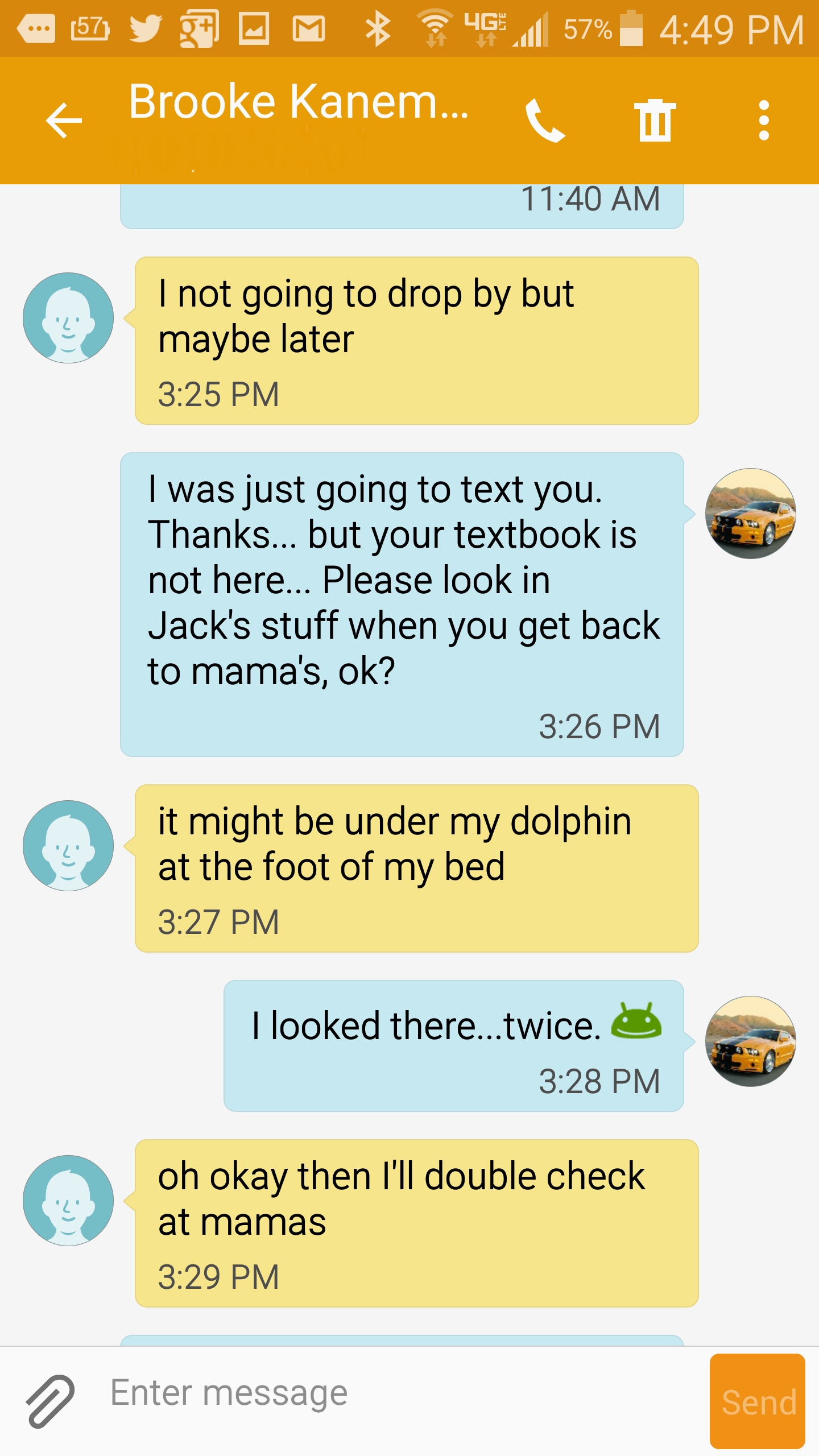 BUT, the saga of her killing me for the bazillionth time is not over… Not justyet. She is still with her mom who is supposed to take care of all her dance stuff by virtue of the divorce agreement. (You know, the same mom who apparently made no real effort to locate her textbook.)