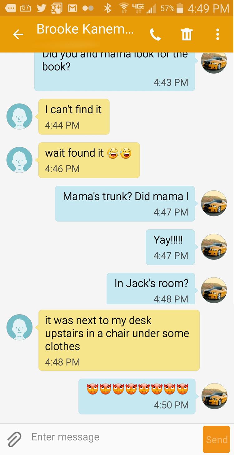 Now I could yell, “Brooke! I told you NOT to touch anything!”
