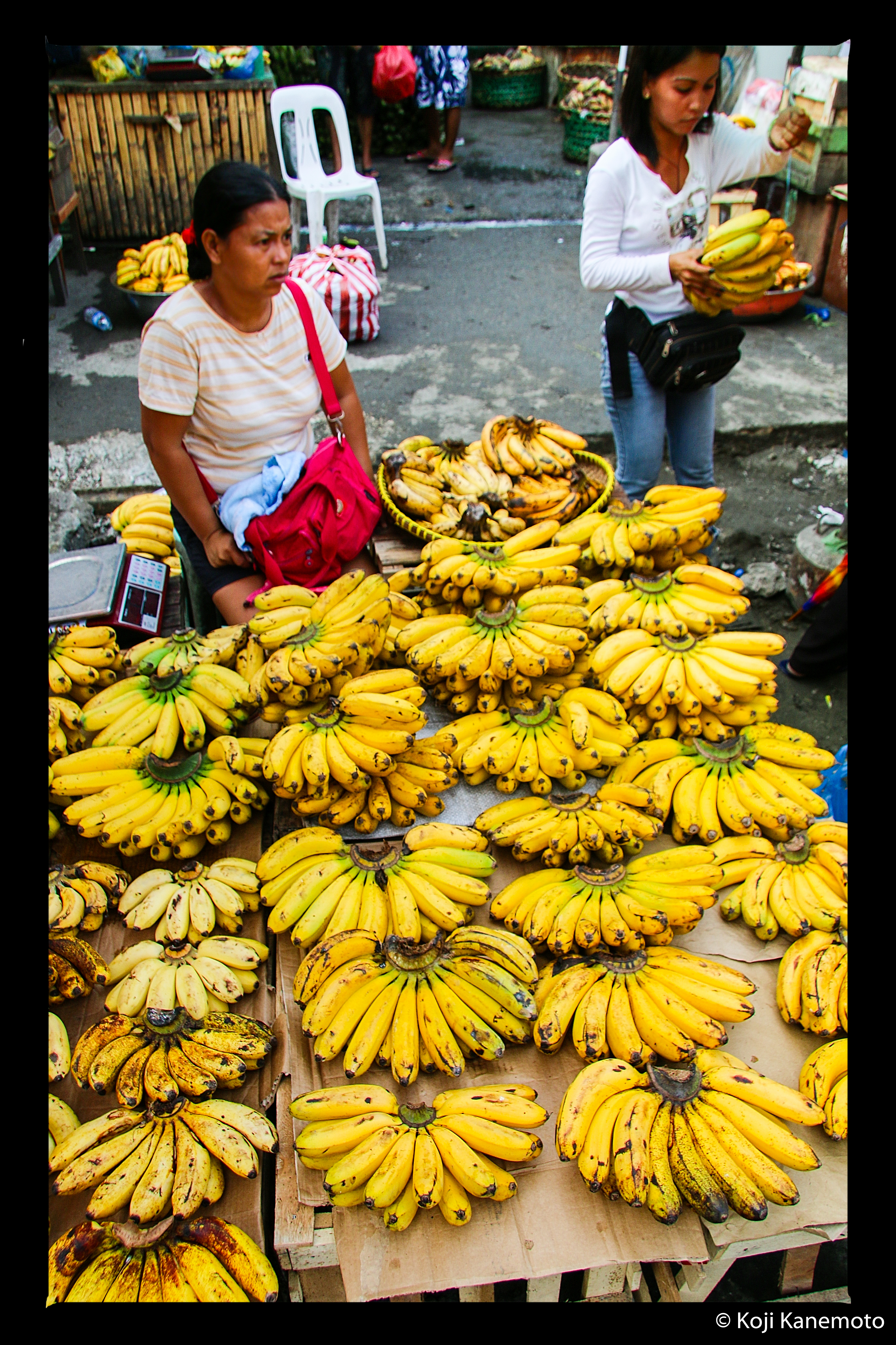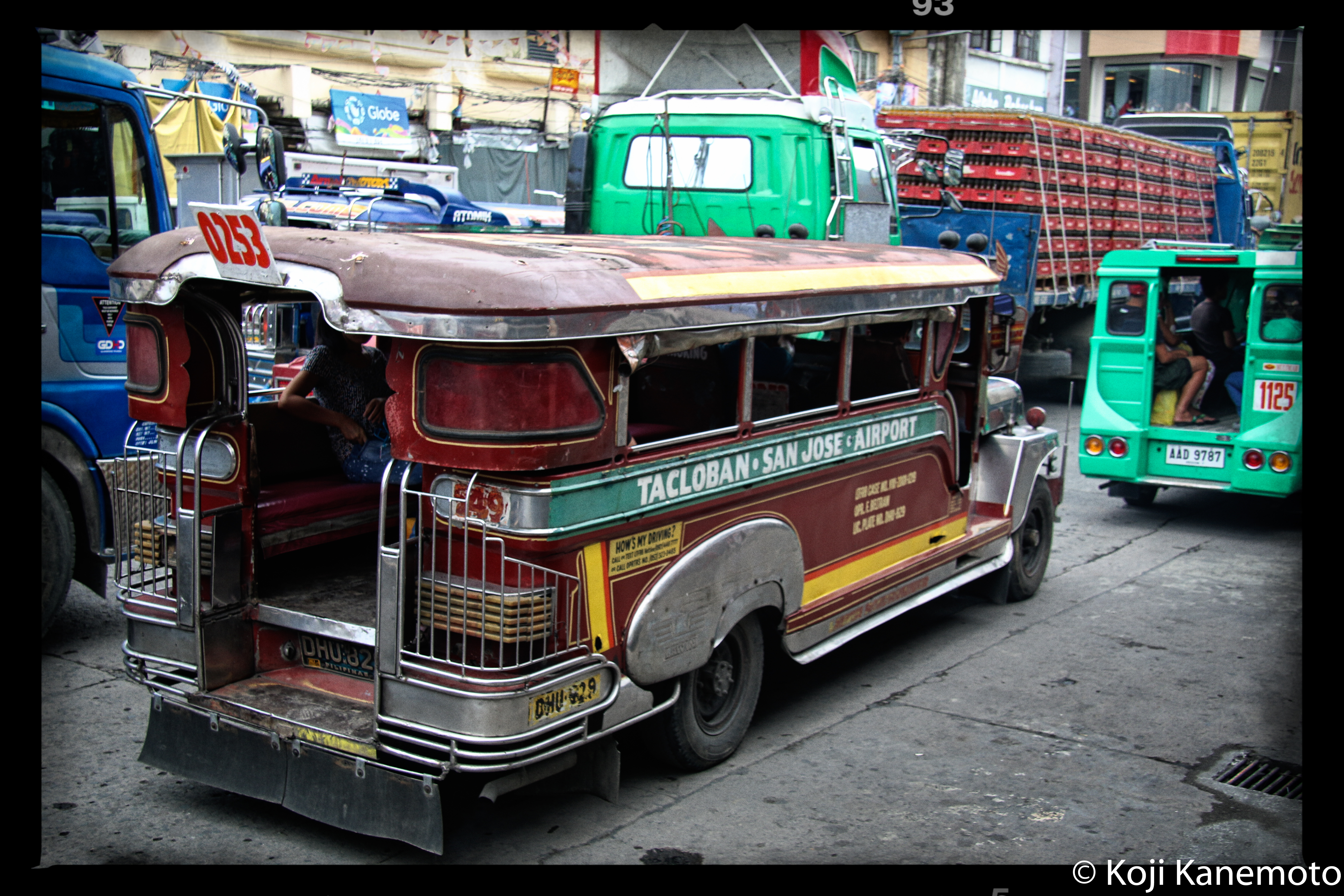 Filipina children we encountered climbing Hill 522 near the invasion beaches of 1944.A typical transit bus, taken through our van’s window.Local people almost always watched our memorial services including this young mother and daughter. She is clutching some of the food we distributed after the services.Vegetable peddler, Tacloban City.Curious locals watching us near Limon River which turned blood red during the battle in 1944 per interviews.Family selling bananas at street side. Bananas grow everywhere on Leyte.