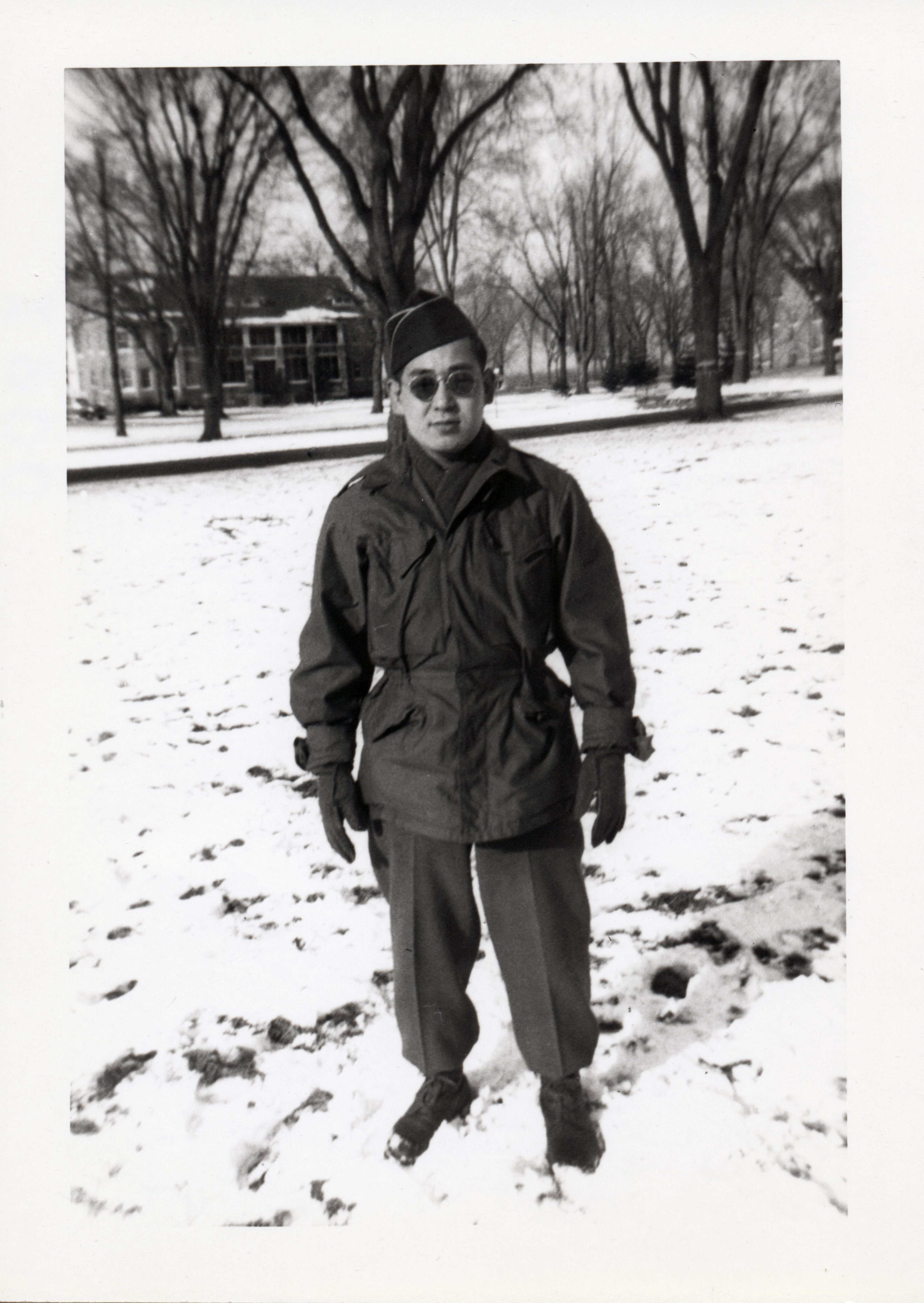 Dad in his US Army duds, Tokyo 1947. The Emperor’s Palace is behind him to his left. MacArthur’s GHQ is off to the right (Dai-Ichi Sei Mei Building).
