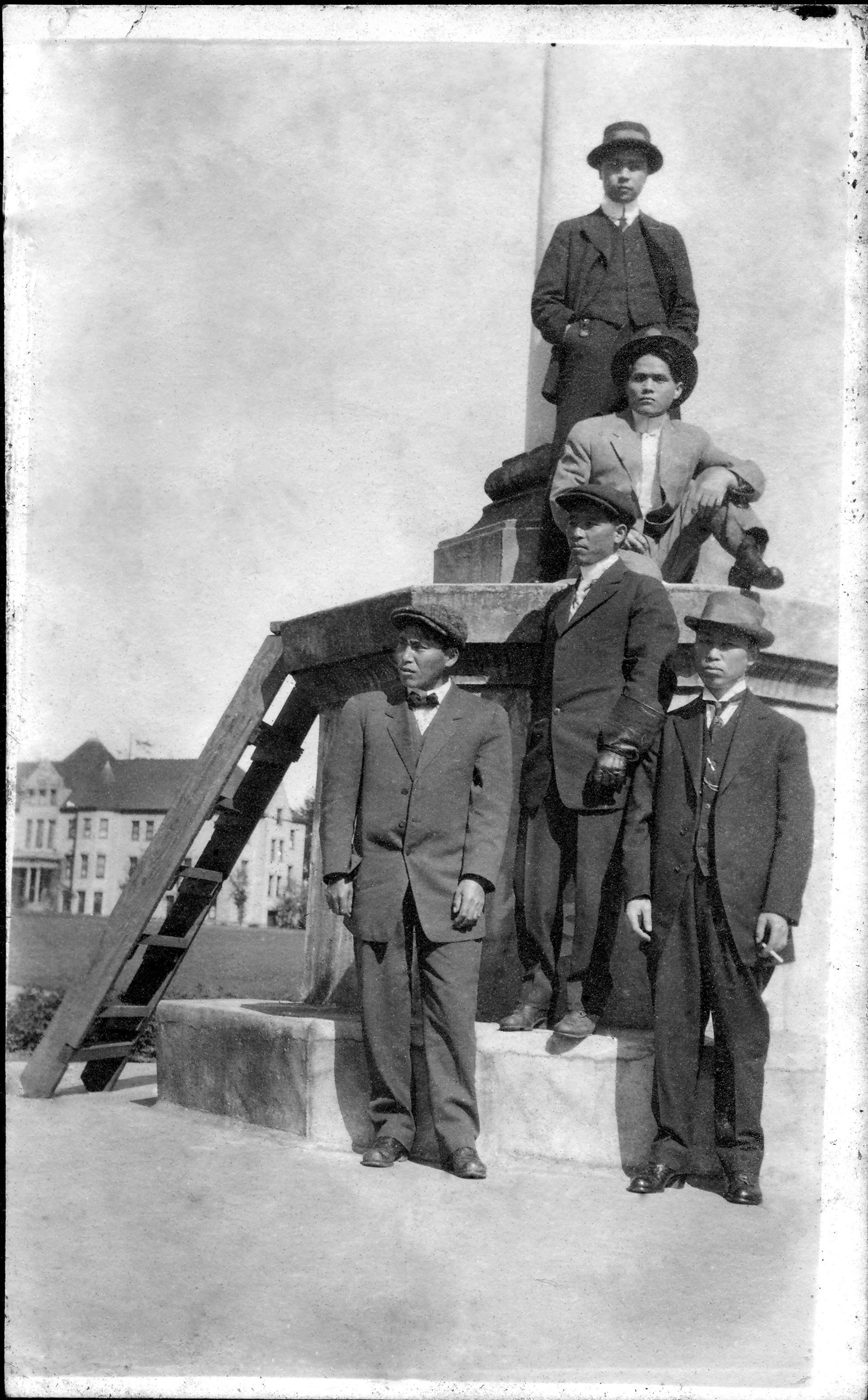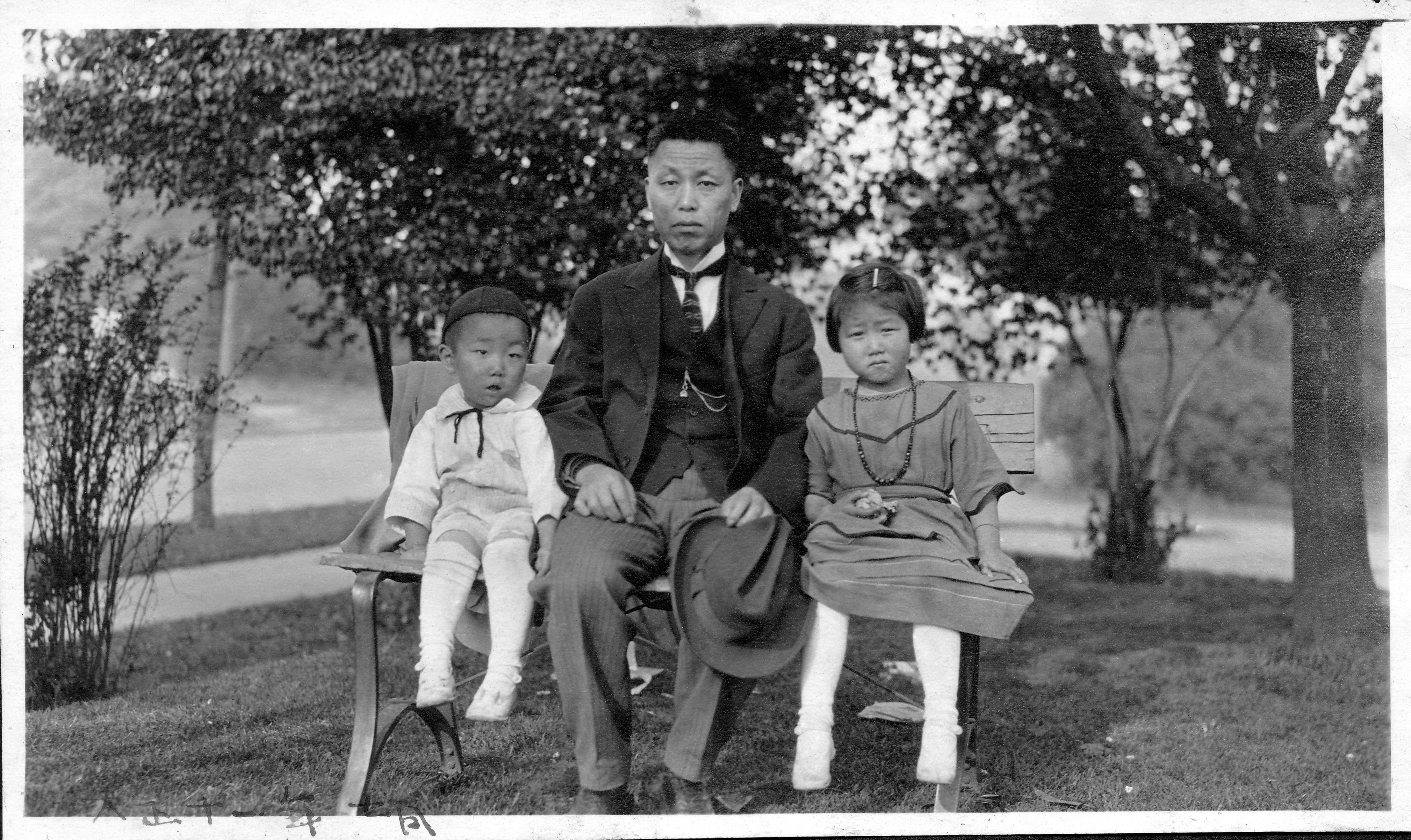 Dad at bottom left then (clockwise): younger sister Mieko, my Grandma Kono, older sister Shiz and younger brother Suetaro who was killed as a Japanese soldier in 1944. King and Maynard Streets, Seattle, WA. Circa 1925.