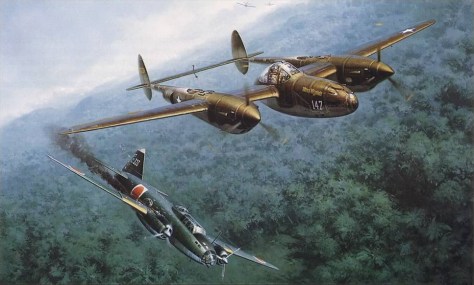 Artist’s rendition of Admiral Yamamoto’s shootdown by Grinnell.