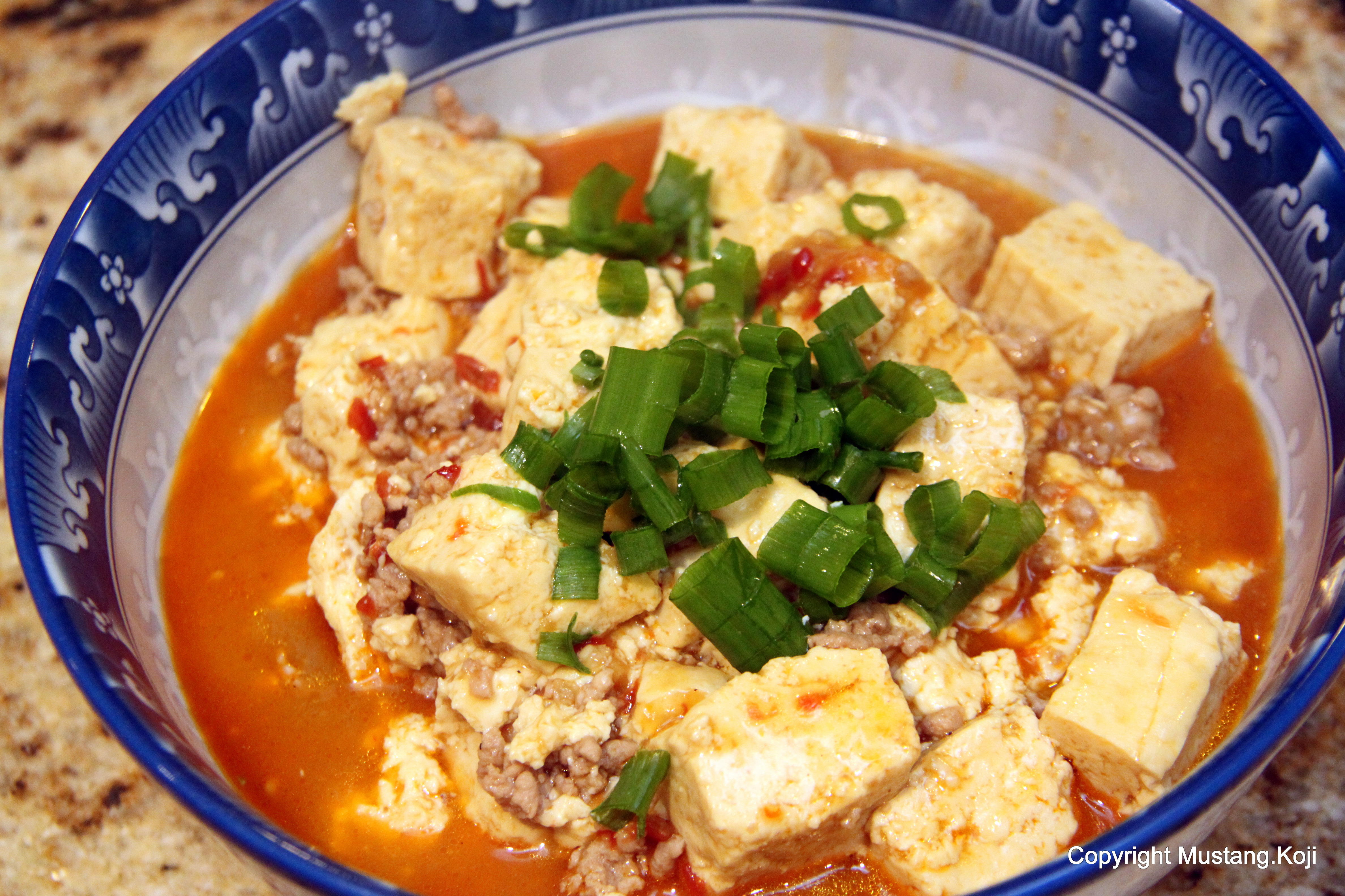 Served by itself, it is not fattening. It only becomes fattening if you prepare it with other foods such as pork or beef or fry it up. In my photograph above, the tofu is simply topped with: