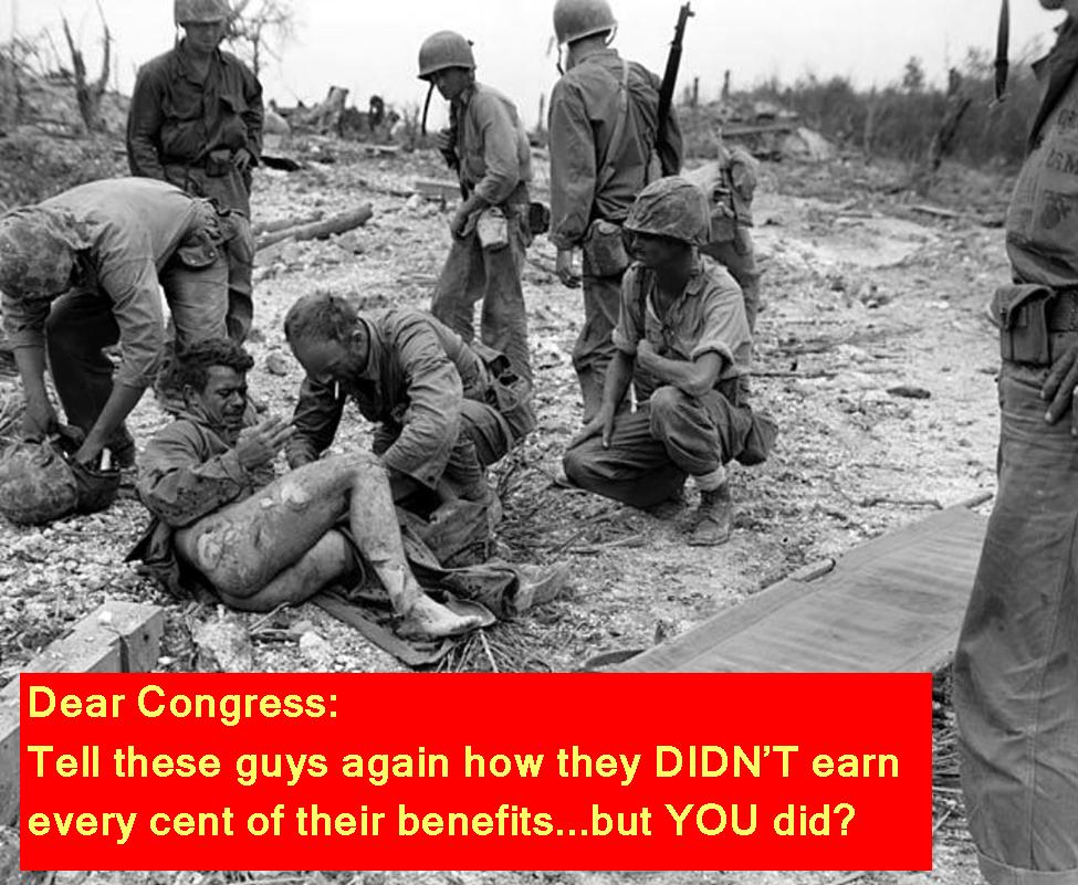 Congress people pay themselves somewheres over $150,000 a year – certainly no ILLICIT income, of course – and don’t get shot at or maimed. They take LONG recesses (i.e., vacations), too.